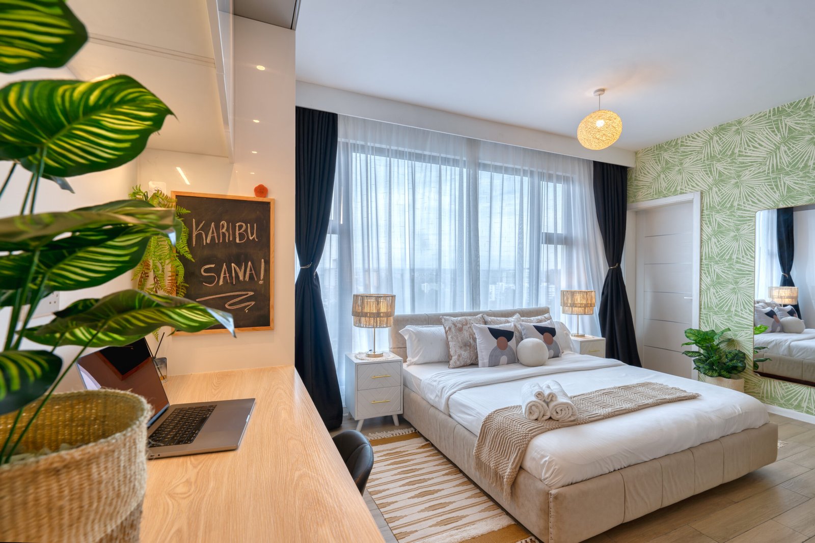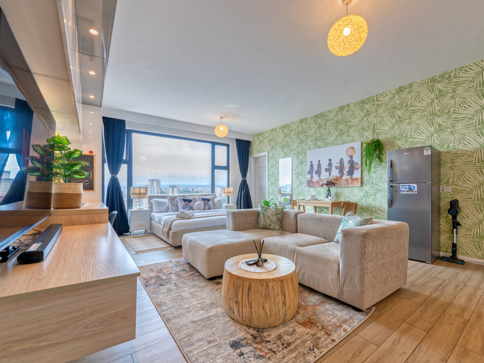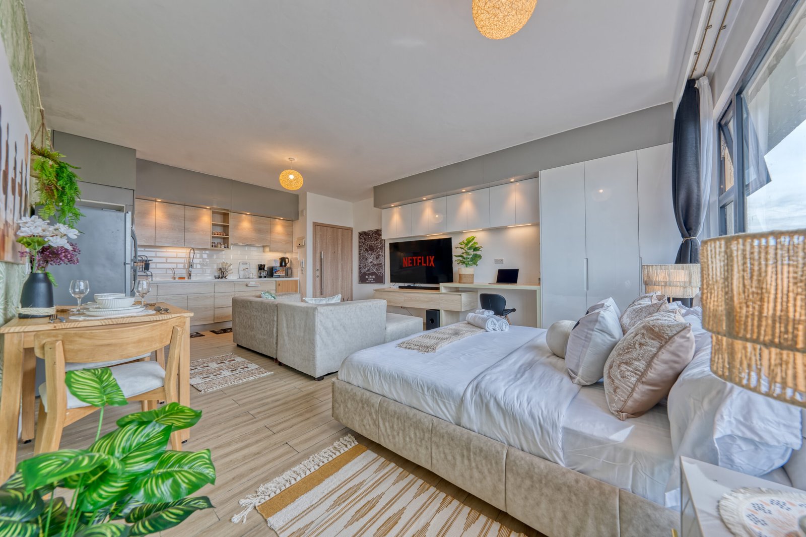 Indulge in urban luxury at our centrally located studio, featuring a lavish king-size bed. Situated in the quiet and safe Lavington neighborhood, just an 8-minute walk from the vibrant Junction Mall, our building offers a range of amenities, including a refreshing pool, a fully-equipped gym, a charming fire pit, and a BBQ area – all within a beautifully landscaped courtyard. Plus, enjoy entertainment on our impressive 70" TV with a complimentary Netflix subscription.