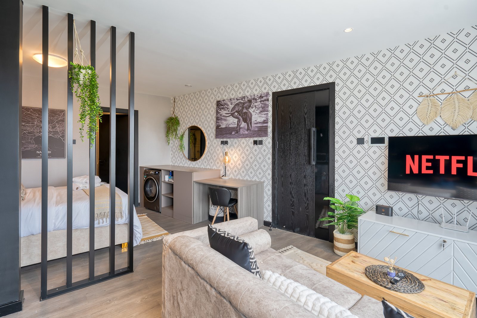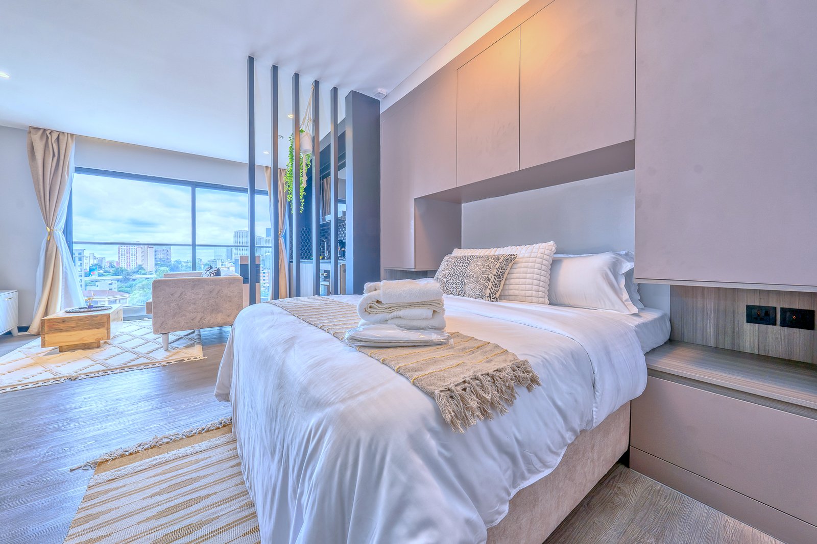 NEW upscale modern loft/studio apartment with a rooftop restaurant! Is located in the heart of Westlands, off Rhapta Road. This premium unit is in a private, secure, central location in a UN-approved high-rise. It features world-class amenities including Rooftop Restaurant , Infinity Pool & fully equipped Gym. It's perfect for business or leisure, singles or couples who seek a stylish, secure stay & is walking distance to ArtCaffe Market, Chandarana Food Plus, Sarit Centre, Urban Eatery etc